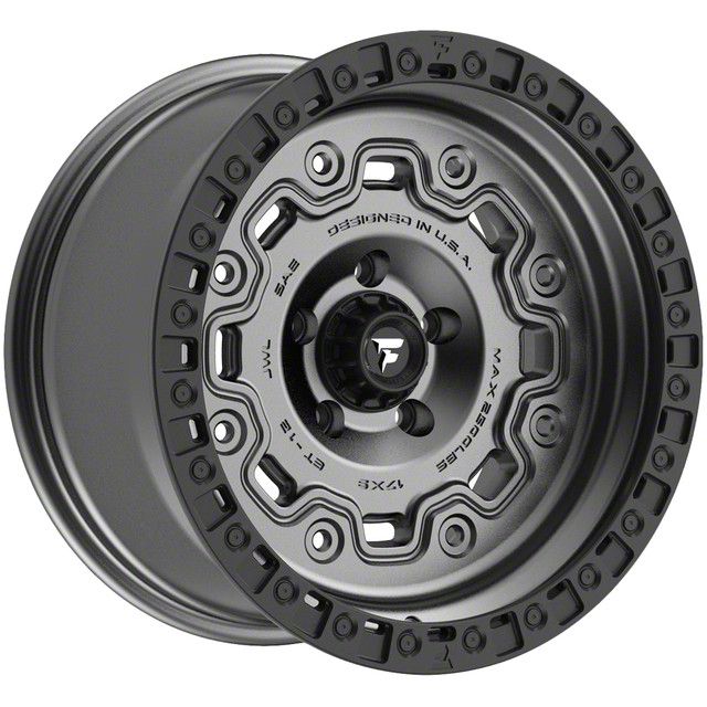Fittipaldi Offroad FT100 Satin Anthracite with Satin Black Lip Wheel; 18x9 is a wheel that stands out with its refined design and precision finish, making it a perfect match for vehicles that demand a sophisticated yet aggressive appearance.
