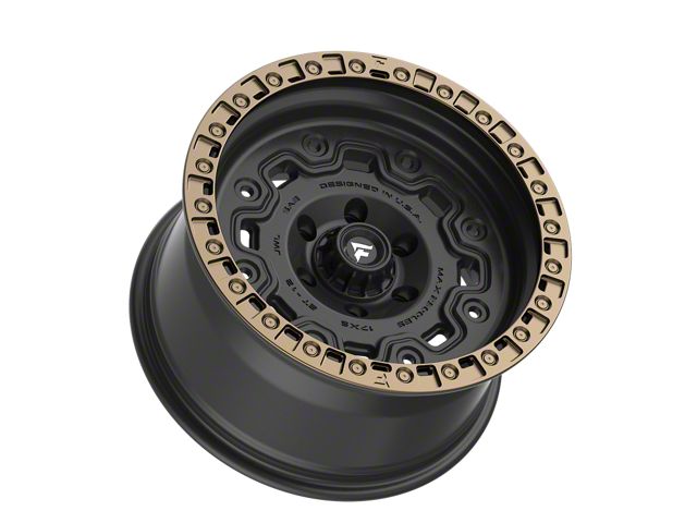 Fittipaldi Offroad FT100 Satin Black with Bronze Ring 6-Lug Wheel; 17x9; -12mm Offset delivers a bold and modern aesthetic, ideal for enthusiasts seeking a refined yet assertive look for their vehicle. With its standout design and distinct finish, this wheel enhances the vehicle's visual stance and street presence. The precise craftsmanship and premium aluminum build reflect Fittipaldi Offroad's dedication to quality and distinctive design. Whether parked or in motion, this wheel draws attention with its clean, aggressive styling.