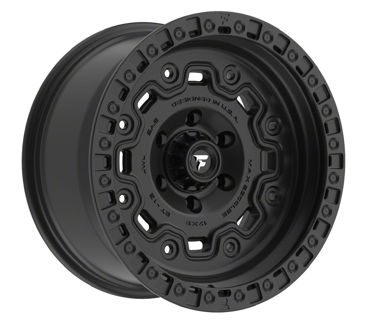 The 17x9 Fittipaldi Offroad FT100 Satin Black Wheel features a high quality, satin black finish for an aggressive appearance that will be the envy of everyone.