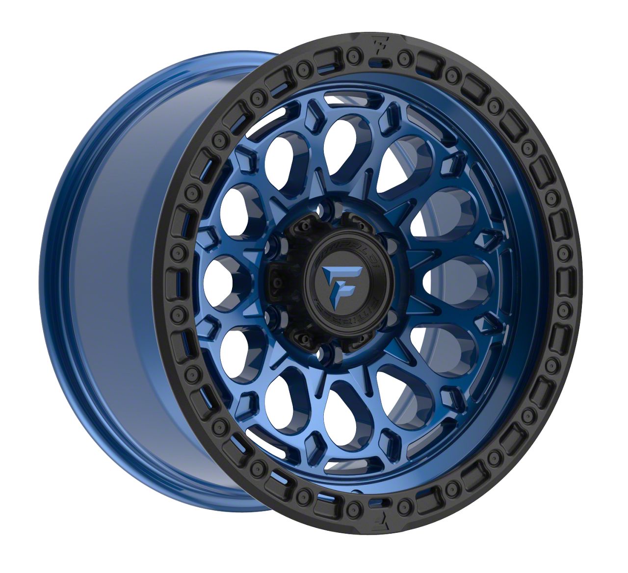 Fittipaldi Offroad FT101 Satin Blue Wheel; 17x9: Immerse your vehicle in style and elegance with this wheel's captivating matte black finish. The unique 10-hole design of this Mammoth wheel sets your vehicle apart, making a statement on the road. Whether cruising the city streets or heading out for a weekend escape, this wheel complements a wide range of vehicle styles.