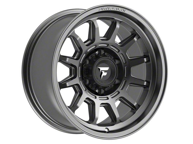 Fittipaldi Offroad FT102 Satin Anthracite Wheel; 17x8.5 The Fittipaldi Offroad FT102 Satin Anthracite Wheel showcases a blend of race-inspired aesthetics, ideal for those seeking a premium and robust appearance. Its design complements various vehicle styles, adding sophistication.
