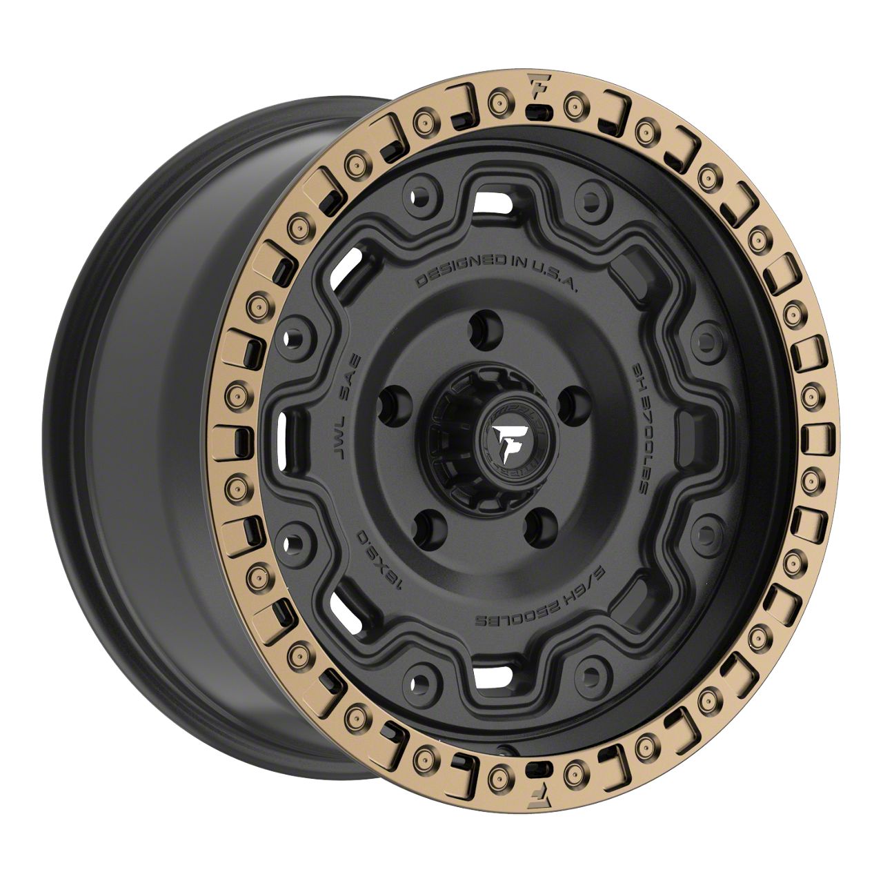 Fittipaldi Offroad FT100 Satin Black with Bronze Ring 5-Lug Wheel; 18x9; 18mm Offset is a perfect blend of style and rugged design, making it a standout choice for those looking to enhance their vehicle's aesthetic appeal. Its bold, dark metallic finish pairs seamlessly with a wide variety of vehicle styles, offering both modernity and durability. Built by Fittipaldi Offroad, this wheel is designed to elevate your vehicle's appearance with its robust presence.