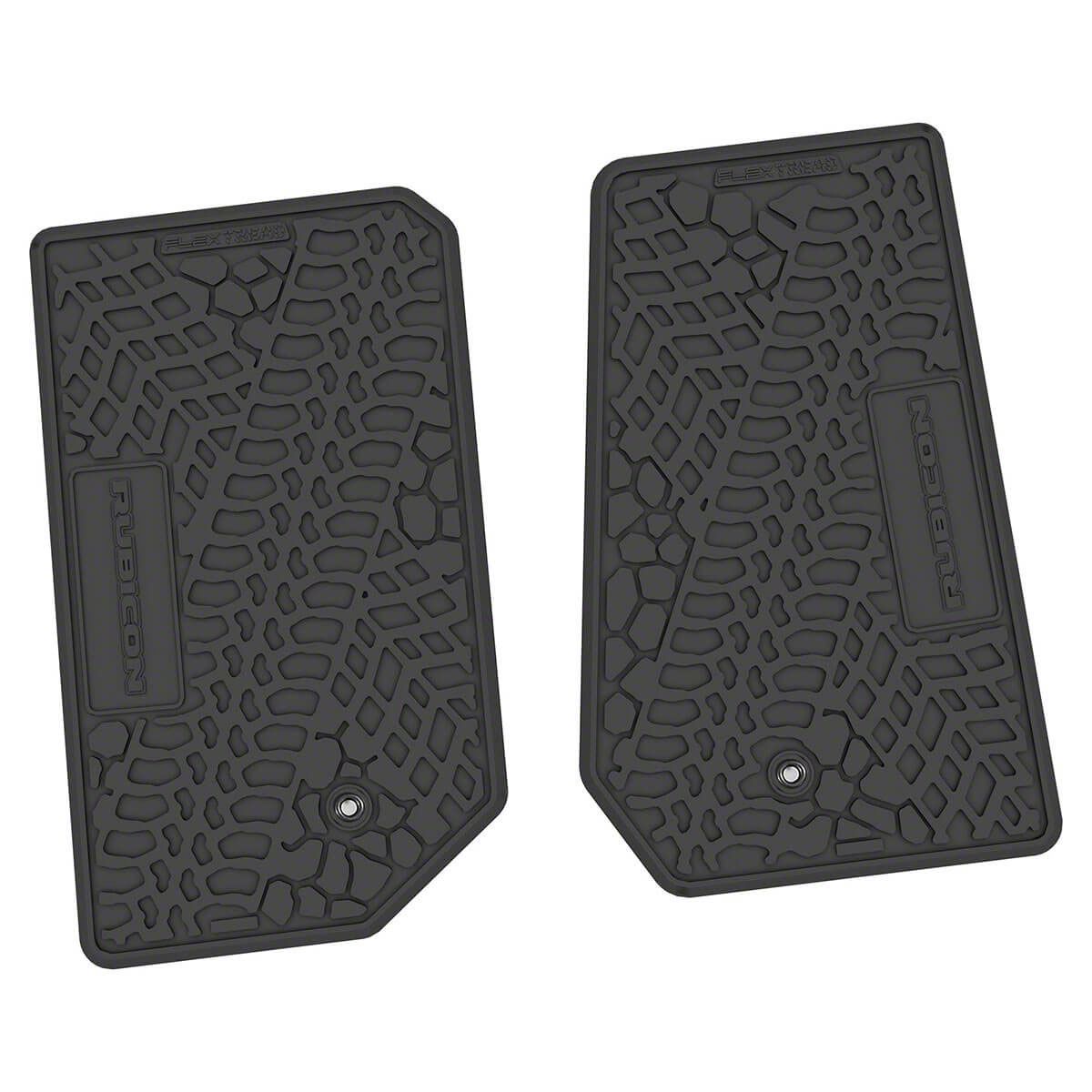 Factory Floorpan Fit Tire Tread/Scorched Earth Scene Front Floor Mats with Rubicon Insert; Black (07-13 Jeep Wrangler JK 2-Door)Find parts that fit my vehicle