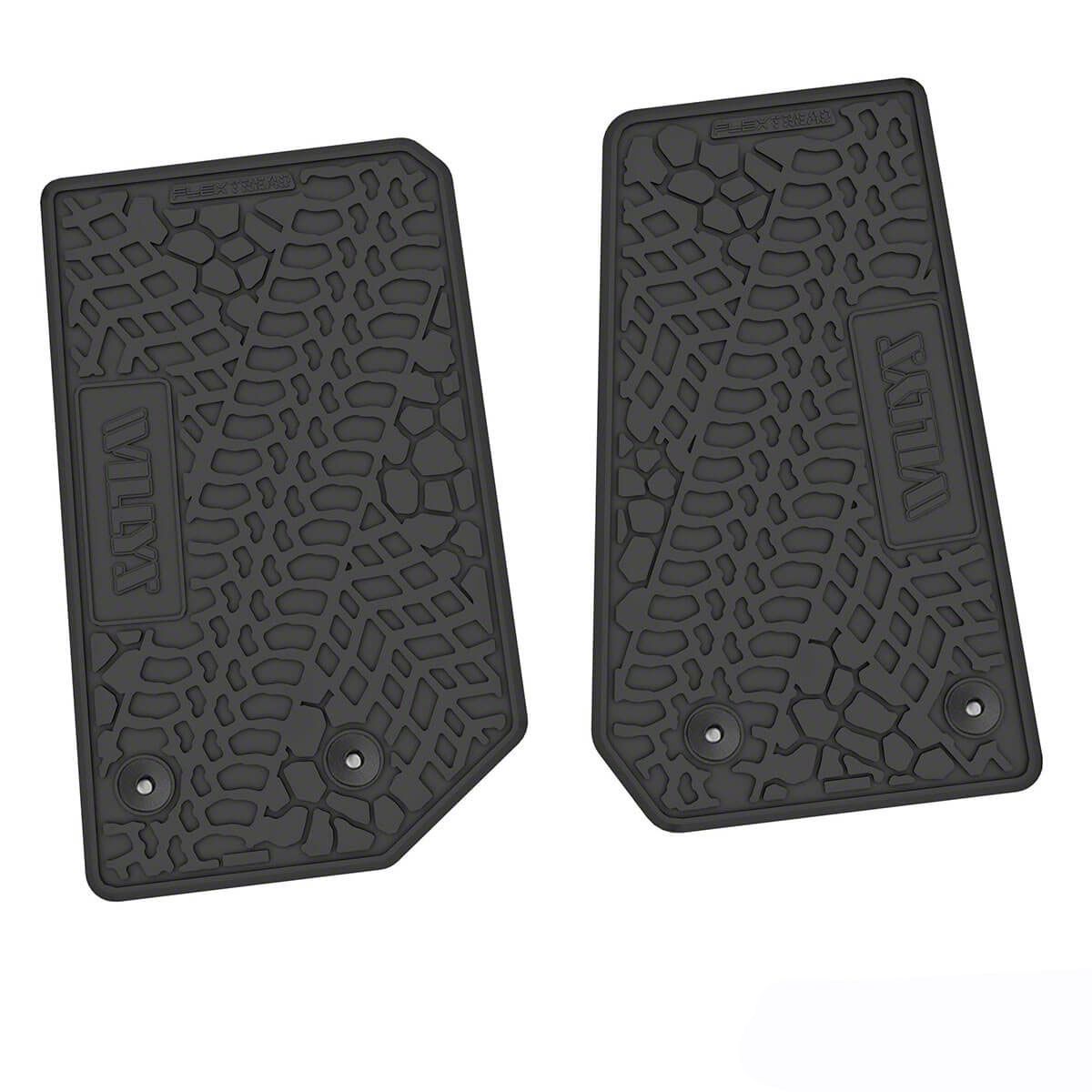 Factory Floorpan Fit Tire Tread/Scorched Earth Scene Front Floor Mats with Willy's Insert; Black (14-18 Jeep Wrangler JK 2-Door)Find parts that fit my vehicle