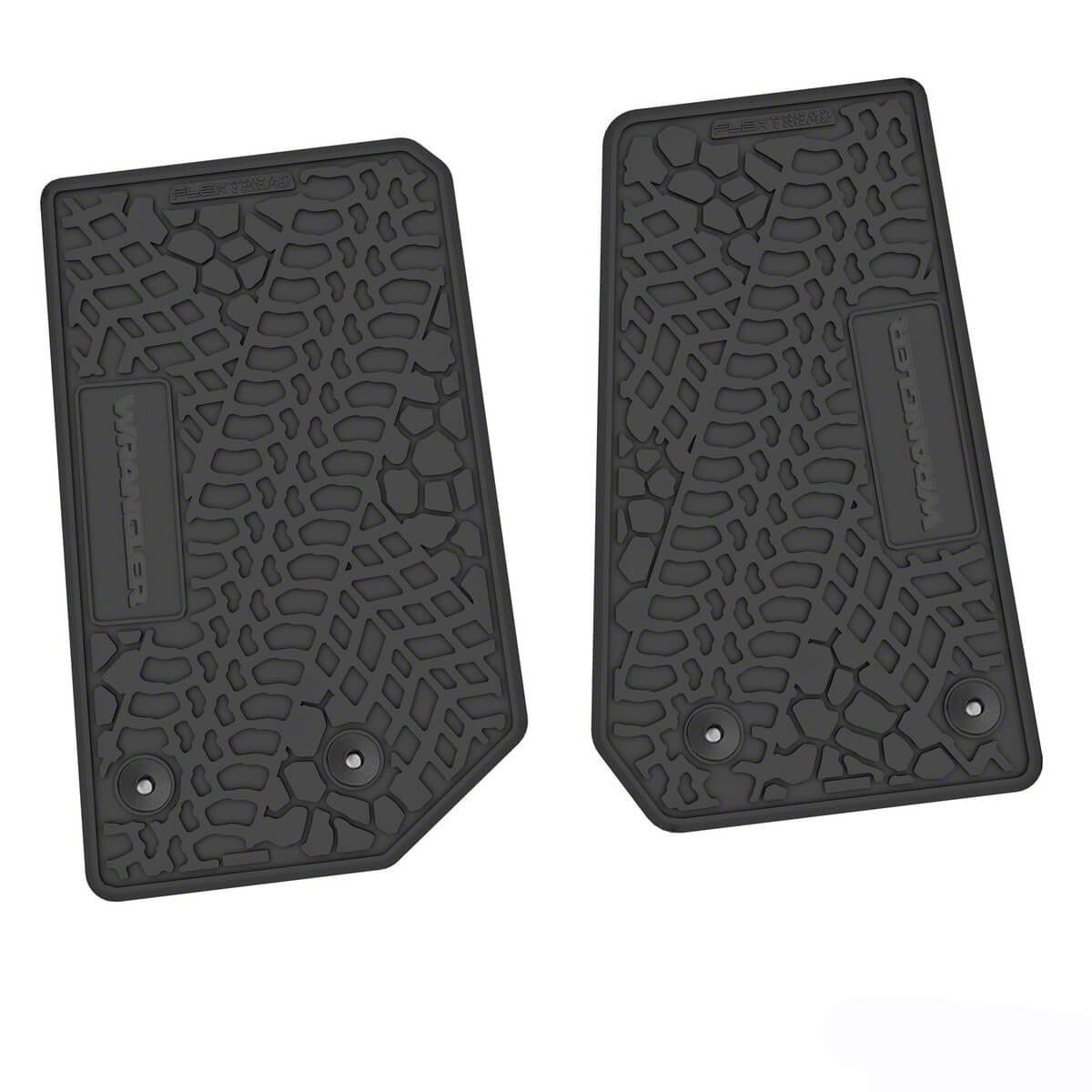 Factory Floorpan Fit Tire Tread/Scorched Earth Scene Front Floor Mats with Wrangler Insert; Black (14-18 Jeep Wrangler JK 2-Door)Find parts that fit my vehicle