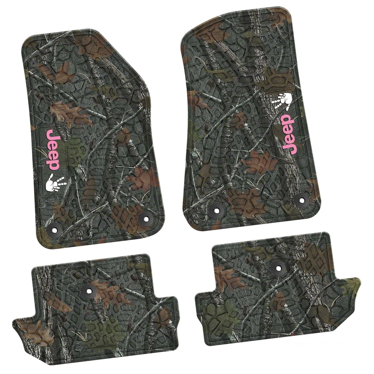 Factory Floorpan Fit Tire Tread/Scorched Earth Scene Front and Rear Floor Mats with Pink and White JEEP Wave Insert; Rugged Woods (18-26 Jeep Wrangler JL 2-Door)Find parts that fit my vehicle