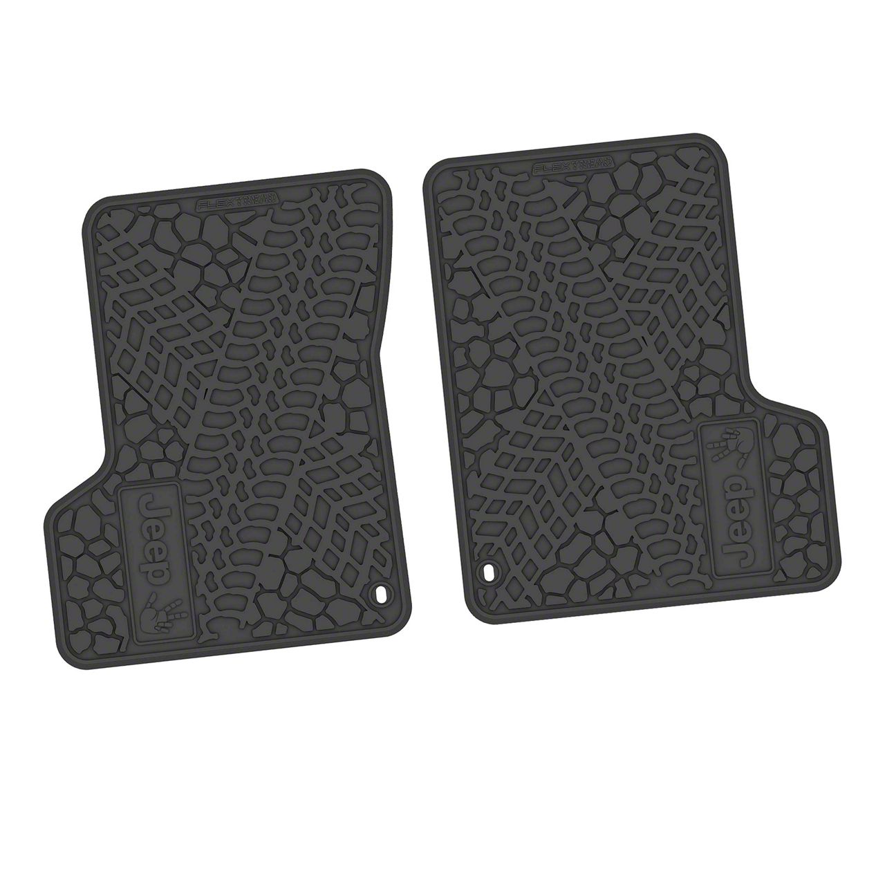 Factory Floorpan Fit Tire Tread/Scorched Earth Scene Front Floor Mats with JEEP Wave Insert; Black (97-06 Jeep Wrangler TJ)Find parts that fit my vehicle