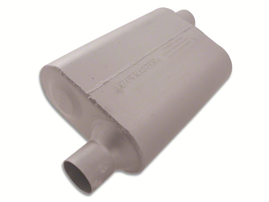 Delta Force. Appreciate the golden sound of mild from a quieter ride without having to sacrifice enhanced power and performance. The Flowmaster 40 Series Delta Flow Offset/Offset Oval Muffler - 2.25 in. is guaranteed to supply the right amount of exhaust harmonics for an overall mild tone and reduced interior resonance. Thanks to the use of "Delta" deflectors drivers can experience all the benefits from one of the quietest muffler options in the 40 Series lineup.