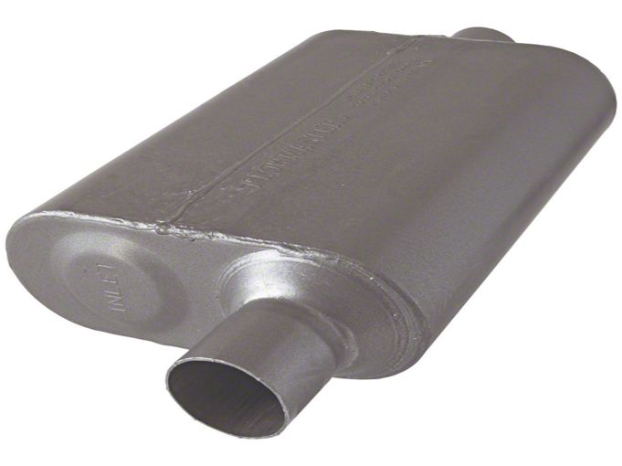 Features. This Flowmaster 40 Series muffler has a simple two-chamber design to help improve horsepower and torque. This design cancels the sound in the exhaust against the angled baffles in the muffler case. When you push the pedal and accelerate the roaring sound is heard both on the outside and the inside of your Wrangler.