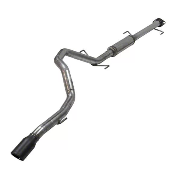 High-Strength Build Quality. This cat-back exhaust utilizes 2.50-inch diameter 404 stainless steel piping in its construction for maximum strength and corrosion resistance. This stainless steel piping is then CNC-mandrel bent and expertly welded, increasing rigidity. The straight-through muffler for its part is likewise machine-formed and welded and integrates the 3.50-inch exhaust tip into its structure for a more efficient installation. Additionally, the integrated exhaust tip features a slant-cut, beveled edge design with a tough black ceramic coating for maximum corrosion protection and style.