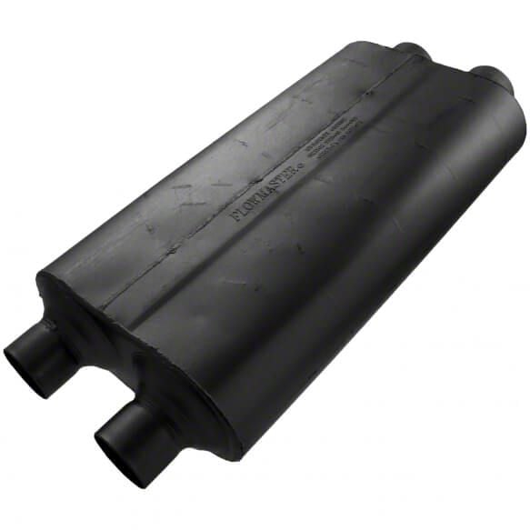 Better Exhaust Sound. Give your vehicle a more refined exhaust sound by installing this Flowmaster 50 Series Big Block Dual In/Dual Out Oval Muffler with 3-Inch Inlet/2.50-Inch Outlet. The muffler’s high-quality design and construction let it produce a milder stock exhaust tone that gives your truck a more refined quality.