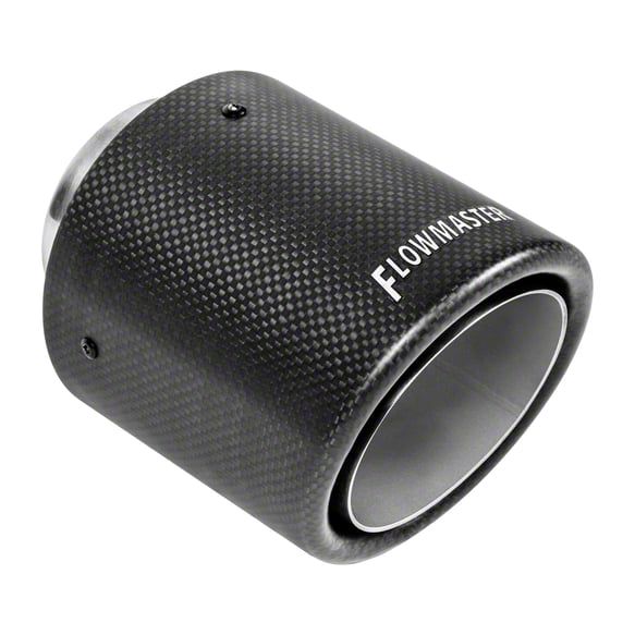 Premium Dual-Wall Carbon Exhaust Styling. The Flowmaster Rolled Angle Cut Double Wall Exhaust Tip adds a race-inspired, high-end touch to your 2.50-inch exhaust system. Featuring an aggressive 4-inch outlet and a real carbon fiber outer shell, this tip delivers both performance aesthetics and long-lasting function.