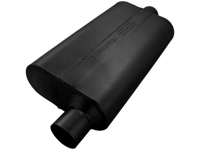 Meticulous Steel. Enhance the performance and sound of your vehicle with the Flowmaster 50 Series Delta Flow Offset/Center Oval Muffler. This muffler is designed for universal use and features a 2.50-inch inlet and outlet size, making it compatible with a wide range of vehicles. Meticulously crafted from top-grade steel, it ensures durability and long-lasting performance.