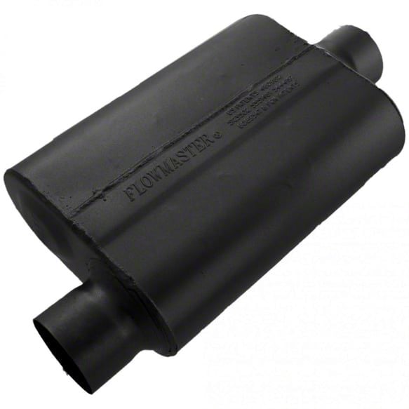 MIG-Welded. Boost your vehicle's auditory presence with the Flowmaster 40 Series Offset/Center Oval Muffler. Expertly crafted with a fully MIG-welded construction, this muffler promises durability and top-tier performance. Made from robust 16-gauge aluminized steel, it's built to withstand the test of time and challenging conditions.