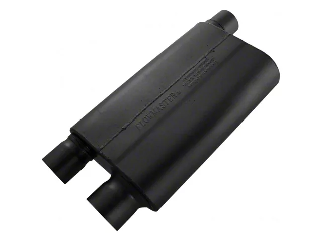 The 80 series is a cross-flow design for applications where the muffler is mounted transversely behind the rear end. Each end of the muffler has both an inlet and an outlet. Delivering an aggressive muscle car sound both inside and outside the vehicle, this is an excellent replacement for Camaros & Firebirds with transverse mufflers. Constructed of 16 gauge aluminized steel and fully MIG welded for maximum durability.