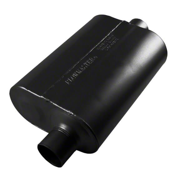 Get The Best Of Both Worlds. With its large case and chambered design, the Flowmaster Super 40 Series Offset/Center Oval Muffler offers an aggressive deep exterior tone while enhancing performance. It helps high horsepower vehicles get more of their power to the ground, in addition to improving fuel performance so you go faster while spending less. The muffler offers noticeable interior resonance, though it’s not so distractive that it damages your driving experience.