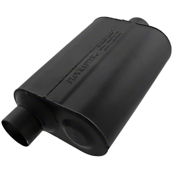 Enhanced Sound and Performance. The Flowmaster Super 40 Series Offset/Center Oval Muffler is an advanced exhaust component designed to enhance the performance and sound of your vehicle. This muffler features a unique design with an offset/center oval configuration that provides excellent sound control and improved exhaust flow. It is also equipped with Flowmaster's patented Delta Flow technology, which enhances the scavenging effect and reduces interior sound levels while maintaining a deep, aggressive tone.