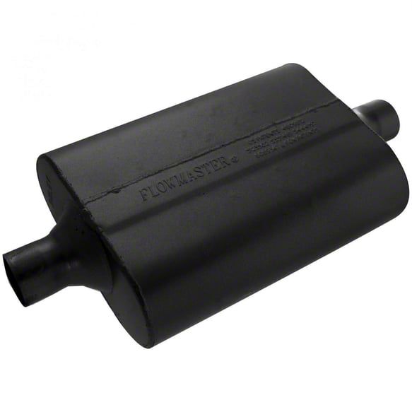 This two-chamber design incorporates Flowmaster's Delta Flow® technology. The Delta deflectors generate increased scavenging for better performance and reduced interior sound. Enjoy a milder exterior tone and reduced interior resonance compared to the standard 40 series. Constructed of 16-gauge aluminized steel and fully MIG welded for maximum durability.