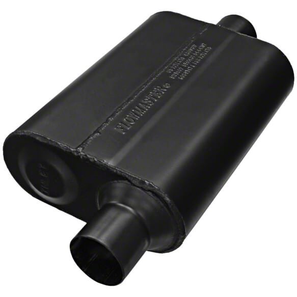 Go-To Muffler. Presenting the Flowmaster Super 44 Series Offset/Center Oval Muffler. Your go-to muffler to achieve an aggressive sound without sacrificing your car’s performance. Featuring a chambered structure and a black finished body, this muffler is designed to deliver a deep, powerful sound that will turn heads wherever you go.
