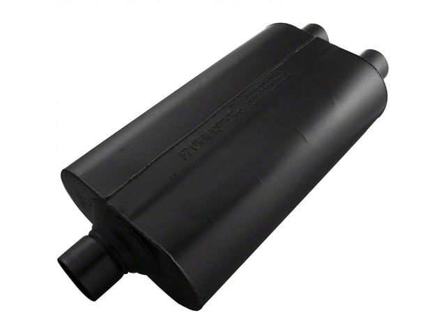 The Super 50 series muffler is a larger version of Flowmaster's 50 series Delta Flow® muffler. Originally designed for trucks and SUVs, it also excels in muscle car and high-performance applications. The larger case size significantly reduces interior resonance and provides a deep, rich tone along with mileage and power gains. Constructed of 16-gauge aluminized steel and fully MIG welded for maximum durability.
