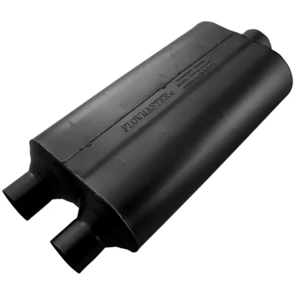 Description. The Super 50 series muffler is a larger version of Flowmaster's 50 series Delta Flow muffler. Originally designed for trucks and SUV's, it is also well suited to muscle car and high performance applications. In addition, the larger case size significantly reduces interior resonance and provides a deep, rich tone along with mileage and power gains. Constructed of 16 gauge 409S stainless steel and fully MIG welded for maximum durability.