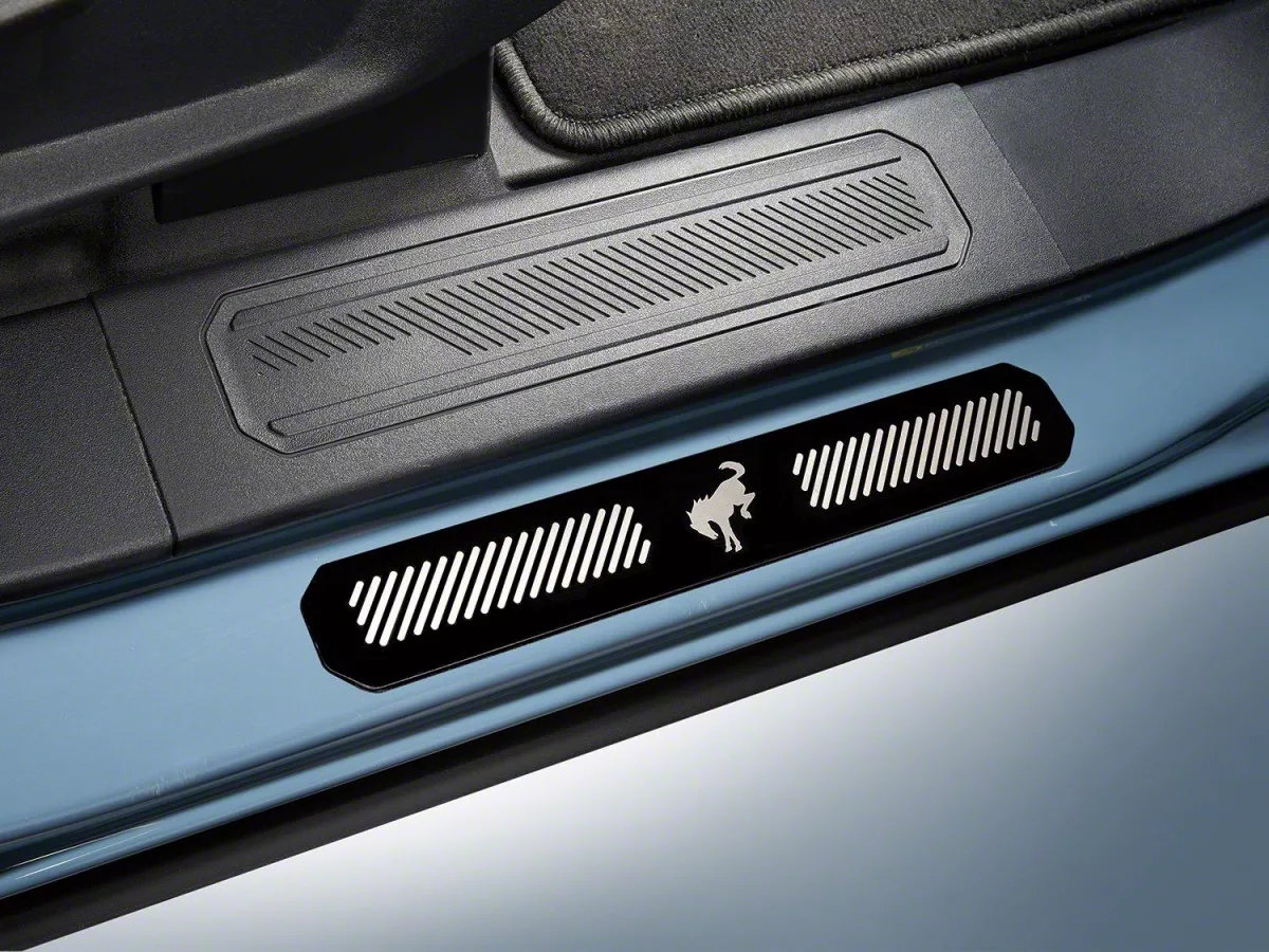 Modern Door Styling. Add reinforcements and protection to your door frame with this Ford Black Platinum Door Sill Plates for your Bronco. Made from bright stainless steel with precision machined graphics, it is a stylish addition to your assembly, capable of reinforcing your car frame and protect the door sill from harsh impact and stress, for a lasting look and a preserved style.