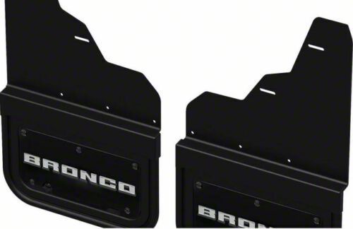Application. These Ford Gatorback Splash Guards with Bronco Text Logo fit 2021-2026 Broncos without Factory Rock Rails.