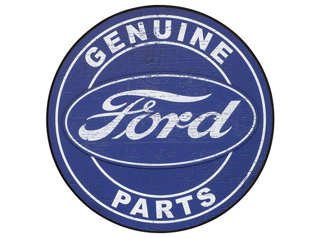 Genuine Ford Parts. Give any boring old wall some serious Ford attitude with a "Genuine Ford Parts" Round Pub Sign. Featuring a vintage "Genuine Ford Parts" logo in blue and white, this circular pub sign features a raised Ford logo for added dimension making it perfect for your garage, den, or dorm room.