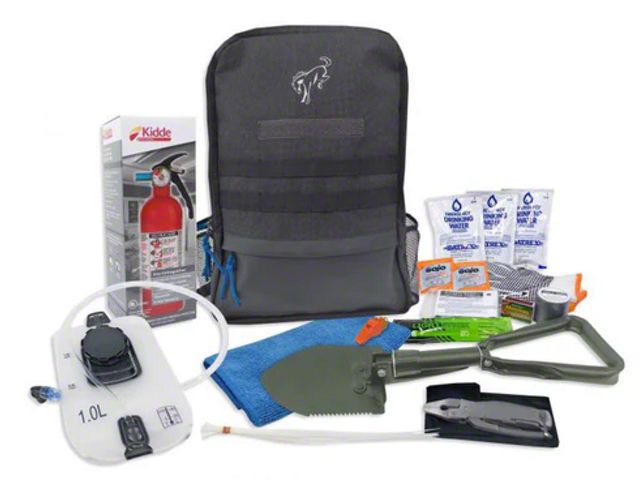 Essential and Ready-to-Use. The Ford Off-Road Assistance Kit with Fire Extinguisher is the perfect addition to your next adventure. This ready-to-use emergency kit comes with a fold-up shovel, a 12-in-1 multi-tool, assorted bandages, a carrying case, and a fire extinguisher. With this kit, rest assured that your ride is packed and ready should you be in a tight spot during your travel. Plus, it includes a Camelback water reservoir, 125ml emergency water, and a survival blanket, which are truly essential when you’re off-roading.