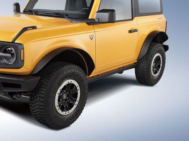 Ford Removable Steel Base Style Fender Flares. The Ford Removable Steel Base Style Fender Flares are an easy-to-install flare for your Bronco which provides an extreme amount of protection from any debris. It can easily be removed whenever you're running through tight off-road situations.