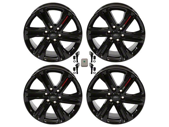 Ford Performance Six Spoke Gloss Black 6-Lug 4-Wheel Kit with TPMS Sensors; 20x8.5; 44mm Offset showcases an exquisite blend of elegance and charisma, perfect for any vehicle aiming for that standout appearance. With its unique design, it not only amplifies the aesthetic appeal of your ride but also complements various vehicle styles. This wheel, stemming from the legacy of Ford Performance, embodies a premium look that's hard to resist.