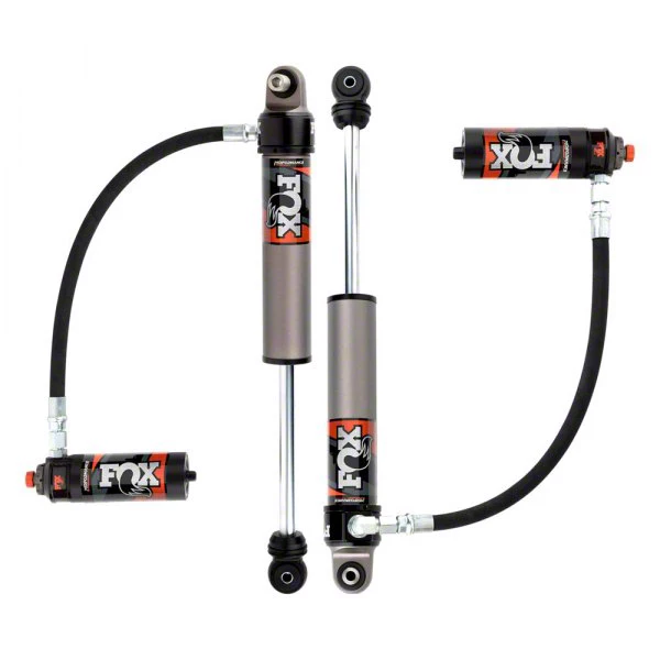 Max Suspension Performance. Introducing the FOX Performance Elite Series 2.5 Adjustable Front Reservoir Shocks - a pair of top-of-the-line shocks designed for vehicles with 2.50 to 4-inch lifts. These front-placement shocks feature an adjustable reservoir that separates shock oil from nitrogen, allowing for optimal performance. The race-developed high-flow piston provides superior handling and control.