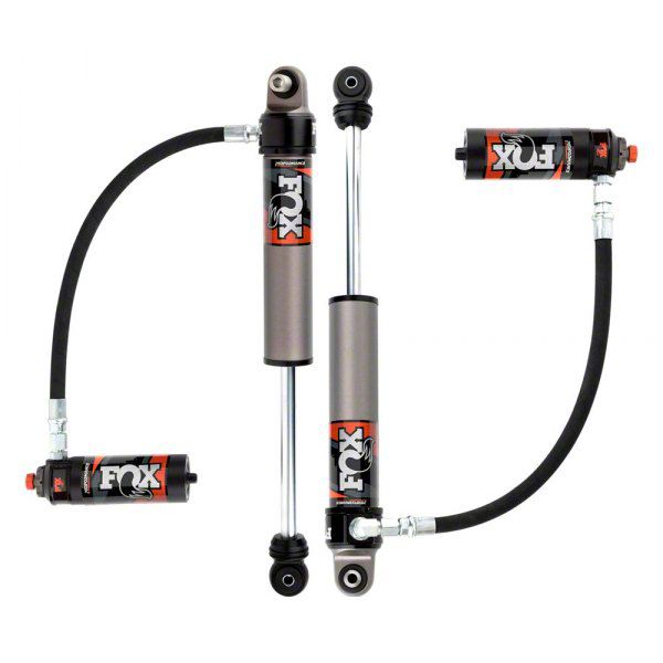 Dial-In Your Ride. Fine-tune your suspension to perfection with the FOX Performance Elite Series 2.5 Adjustable Front Reservoir Shocks' external reservoir, which provides easy access to compression and rebound adjustments. With the ability to customize your suspension settings, you can create the perfect setup that meets your specific needs and preferences, ensuring a comfortable and responsive ride that enhances your driving experience on and off the road. Get ready to take control of your suspension and tailor it to your exact requirements with the FOX Elite Series shocks.