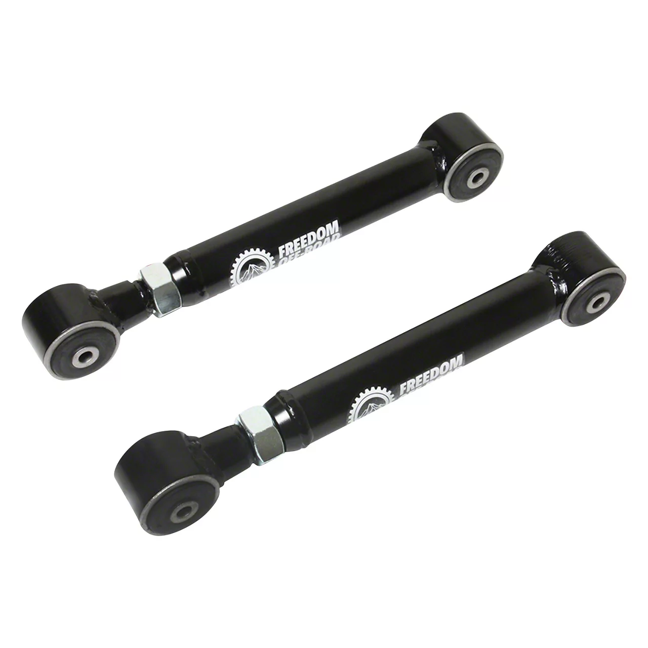Premium Tubing and Bushings. Freedom Offroad manufactured these Adjustable Rear Upper Control Arms using heavy-duty tubing with excellent structural integrity to handle off-road rigors. The powder coat finish provides added protection from rust and wear. In addition, the premium rubber bushings on each end also exhibit higher load-bearing capacity and improved tear strength than the factory counterparts.