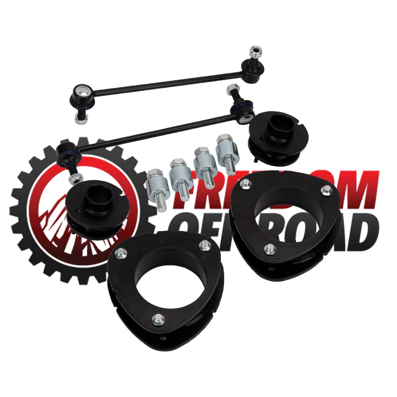 Leveling Lift Kit. The Freedom Offroad 1.75-Inch Front / 1.25-Inch Rear Leveling Kit enhances ground clearance and stance by raising the front and rear of the vehicle. It is designed to provide a balanced lift that improves off-road capability and accommodates larger tire sizes, making it ideal for those seeking improved performance and aesthetic appeal.