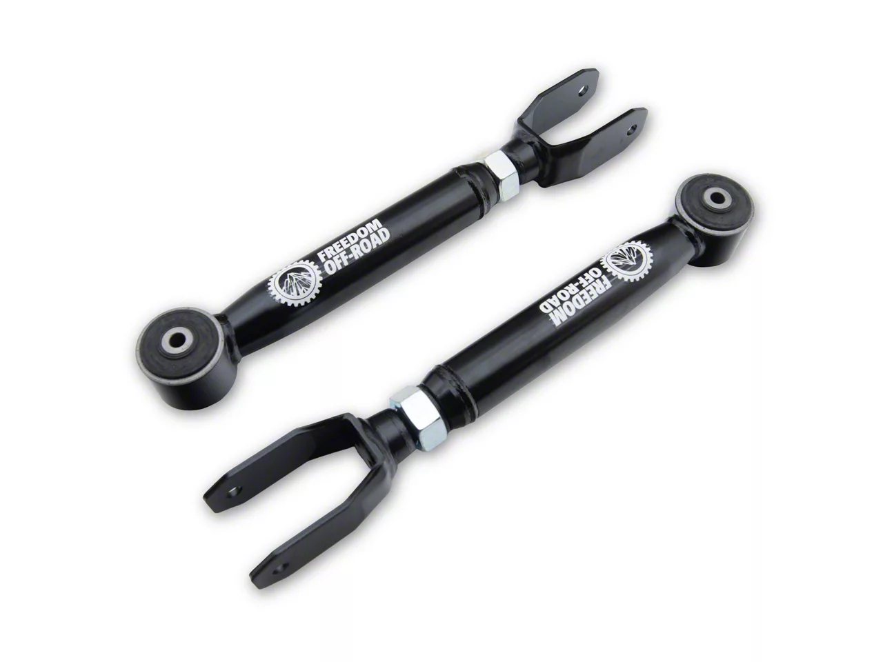 Reinforced Steering and Handling. Freedom Offroad offers this pair of Adjustable Front Upper Control Arms for 0 to 8-Inch Lifts to replace your worn-out factory control arms. These are particularly designed to provide improved traction and reduced wheel hops for XJs with stock heights and suspension lift set-up of up to 8 inches. Additionally, Freedom Offroad ensures that your XJ is equipped with better-than-stock control arms necessary for an advanced stance and bolder off-road experience.