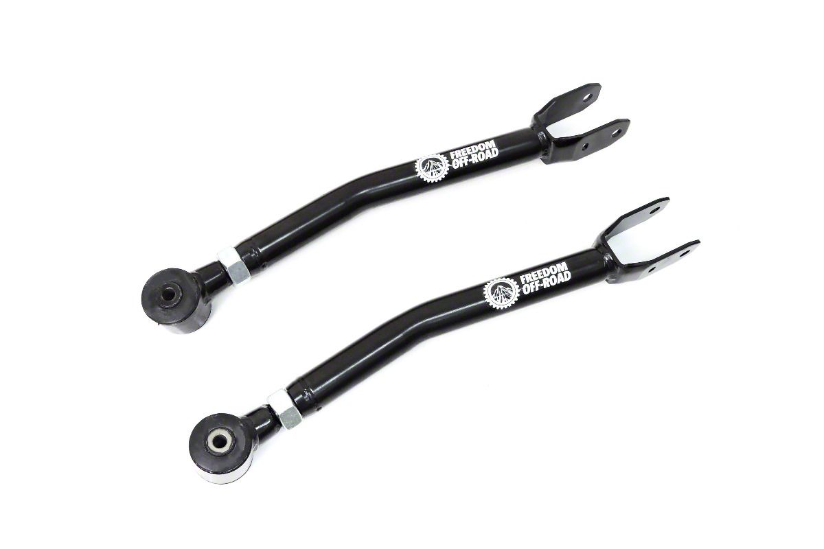 Stable Offroad Performance. Unlock the full potential of your Jeep Gladiator with Freedom Offroad Adjustable Front Upper Control Arms for 0 to 4-Inch Lift. With their adjustable length feature, these control arms allow for precise suspension tuning to accommodate lifts from 0 to 4 inches, providing an optimized setup for improved vehicle handling and stance. The enhanced suspension geometry corrects the caster and pinion angles for lifted setups, resulting in better alignment, reduced tire wear, and a smoother ride.