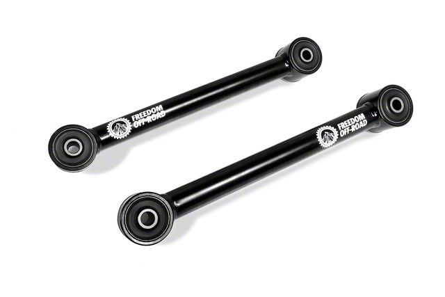 Hardline Cast Aluminum. The Freedom Offroad Rear Upper Control Arms feature hardline cast aluminum steel that has been thoroughly processed and anodized with Zinc and rust-resistant black powder coating that further fortifies its sturdy structure and gives it extra strength to handle your vehicle's full weight.