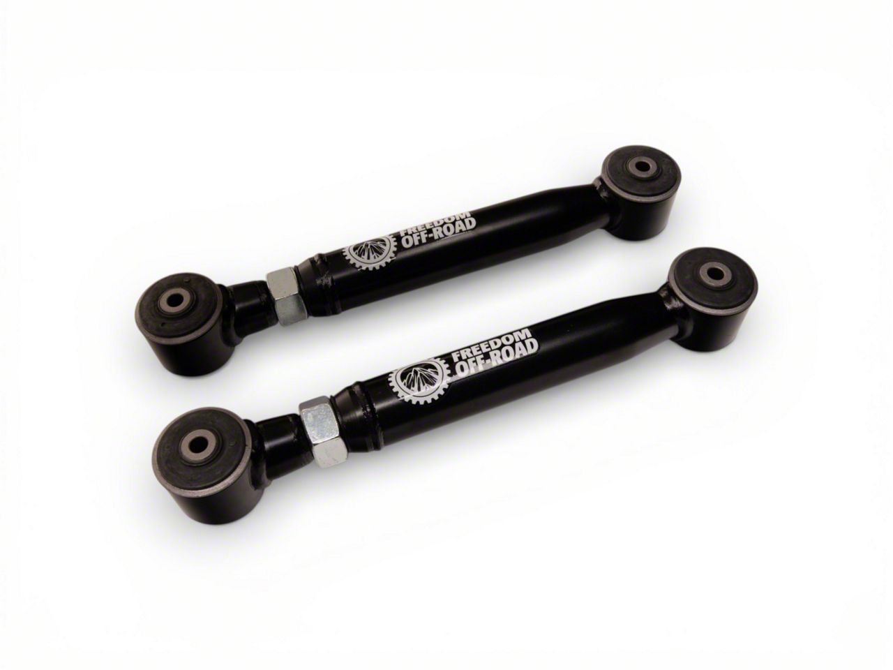 Premium Tubing and Bushings. Freedom Offroad manufactured these Adjustable Rear Upper Control Arms using heavy-duty tubing with excellent structural integrity to handle off-road rigors. The powder coat finish provides added protection from rust and wear. In addition, the premium rubber bushings on each end also exhibit higher load-bearing capacity and improved tear strength than the factory counterparts.