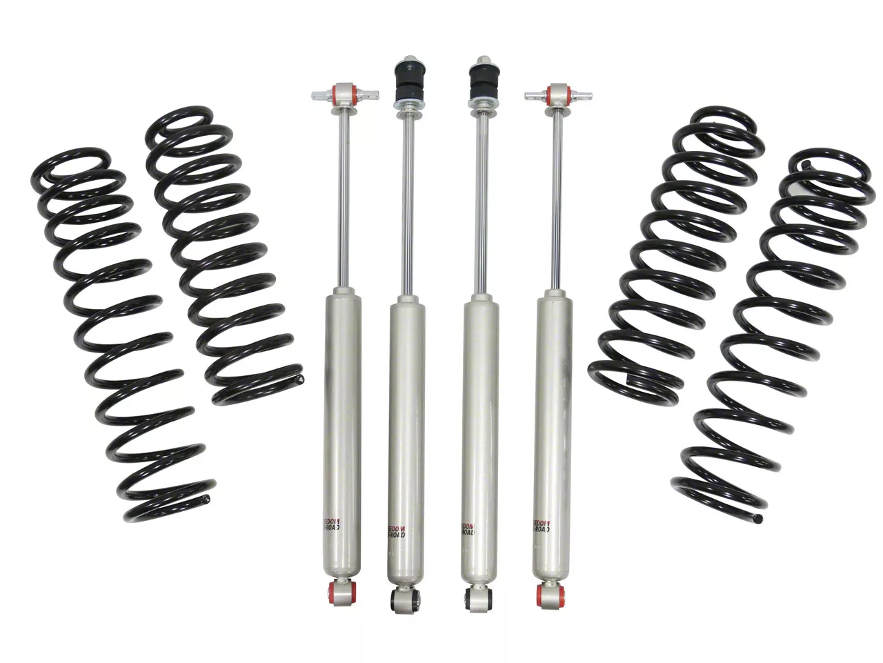 Durable and Reliable Design. Constructed from premium steel, the Freedom Offroad Lift Springs and Shocks are built to withstand demanding driving conditions. The durable design ensures long-lasting performance, while the precision engineering guarantees a perfect fit and easy installation. This lift kit offers both enhanced performance and reliability, ensuring your vehicle operates smoothly on and off the road.