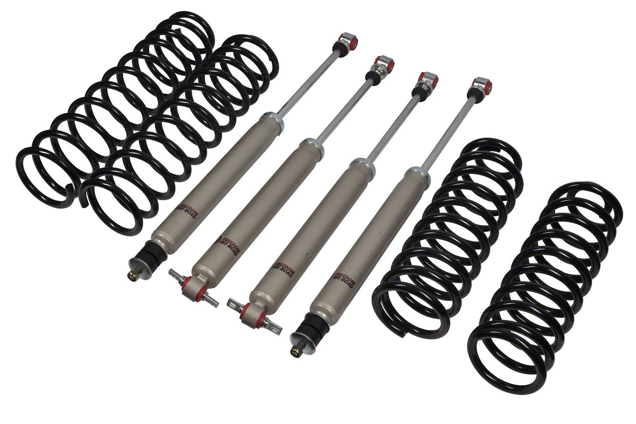Installation. Putting these Freedom Offroad 2.50-Inch Front and Rear Lift Springs with Shocks on your Jeep Wrangler JK is easy and requires no drilling.