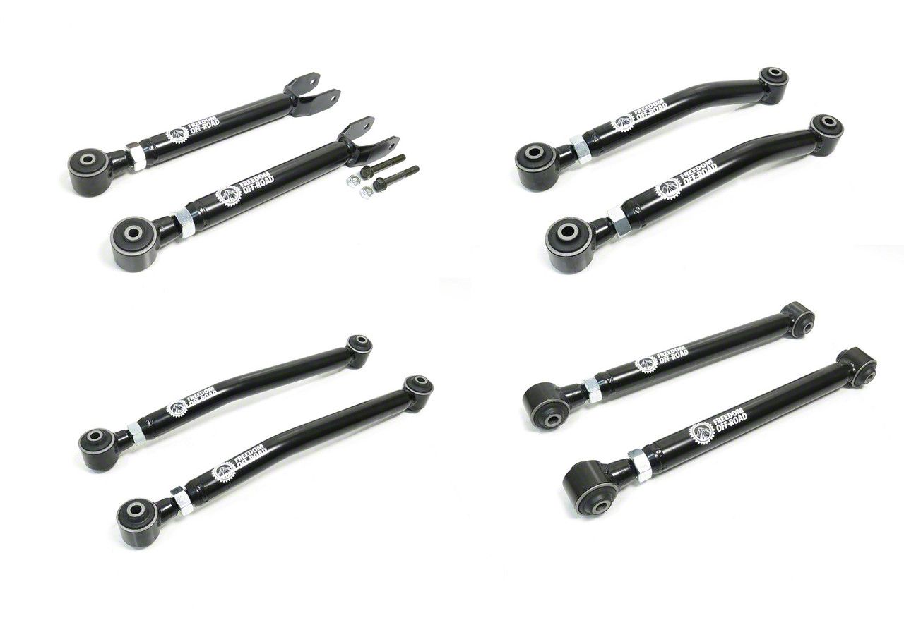 Performance. These Freedom Offroad Adjustable Front and Rear Control Arms' adjustable design allows accurate suspension geometry adjustment. This is especially important after lifting your vehicle to maintain correct alignment and handling characteristics. It ensures that, irrespective of the lift height, your Jeep operates at its best.