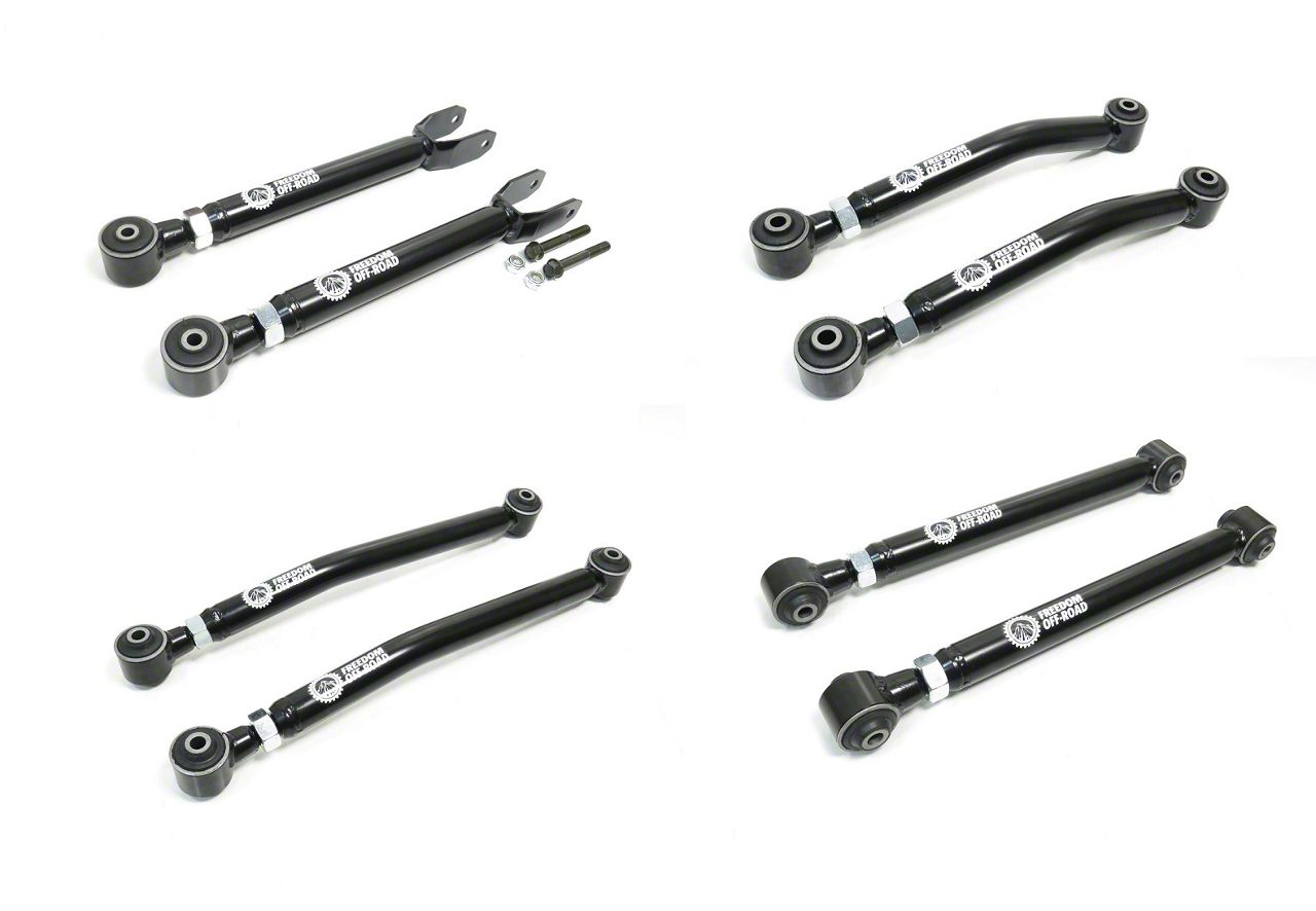 Ultimate Upgrade. Elevate your off-road experience with Freedom Offroad Adjustable Front and Rear Control Arms for 0 to 4.50-Inch Lift on your Jeep Wrangler JK. These control arms are the ultimate upgrade for optimizing your vehicle's suspension performance.