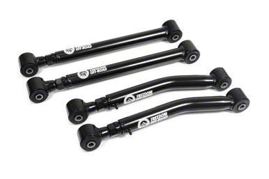 Adjustable Stem. Elevate your Jeep Wrangler JK's performance with the Freedom Offroad Adjustable Rear Upper and Lower Control Arms, tailored for lifts ranging from 0 to 4.50 inches. These control arms are constructed from heavy-duty material, ensuring durability and strength under the most demanding off-road conditions. The 1-inch solid threaded adjustable stem allows for precise adjustments, ensuring your Wrangler maintains proper geometry even after lifting.