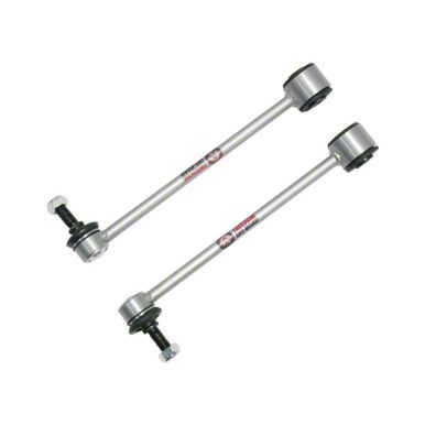 Construction and Appearance. Featuring a metallic silver zinc alloy coated finish, these sway bar end links are engineered for strength, durability, and corrosion resistance. Each link is built with neoprene rubber bushings to absorb road vibrations and reduce noise, while carbon steel ball studs provide precise articulation and long-lasting performance. The robust construction ensures optimal control of body roll and sway during aggressive cornering or uneven terrain driving, helping maintain smooth, predictable handling across various conditions.