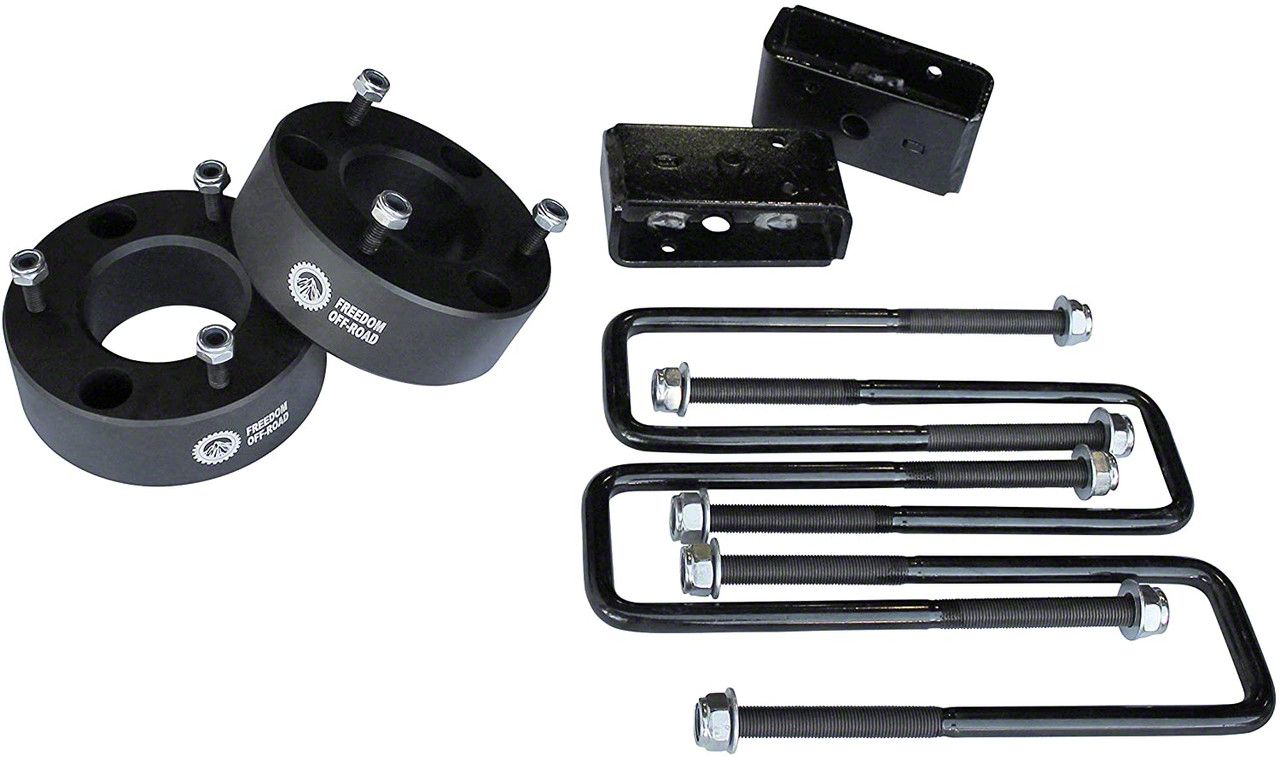Practical and Effective Lift Solution. The Freedom Offroad 3-Inch Front Strut Spacer / 2-Inch Rear Block Lift Kit provides a practical and effective way to elevate your vehicle's ride height. Specifically designed for Nissan Titan models, this kit ensures enhanced ground clearance and a leveled stance for improved aesthetics and off-road performance.