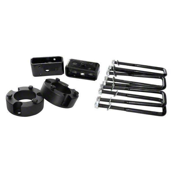 Billet Aluminum Spacers. This lift kit consists of billet aluminum front strut spacers. Their high-strength build enables the spacers to adjust your truck’s height without compressing or breaking. Furthermore, they are completed with a black powder coat finish to prevent the damaging effects of corrosive elements.