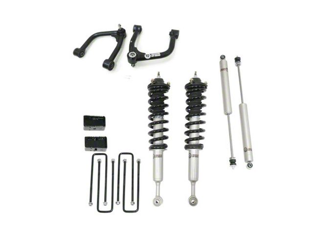 Construction and Appearance. Crafted with a combination of glossy black and polished chrome finishes, this lift kit not only delivers durability but also adds a sleek, high-performance look to your suspension system. The included upper control arms and shocks are built to handle rugged conditions while ensuring a smooth ride.