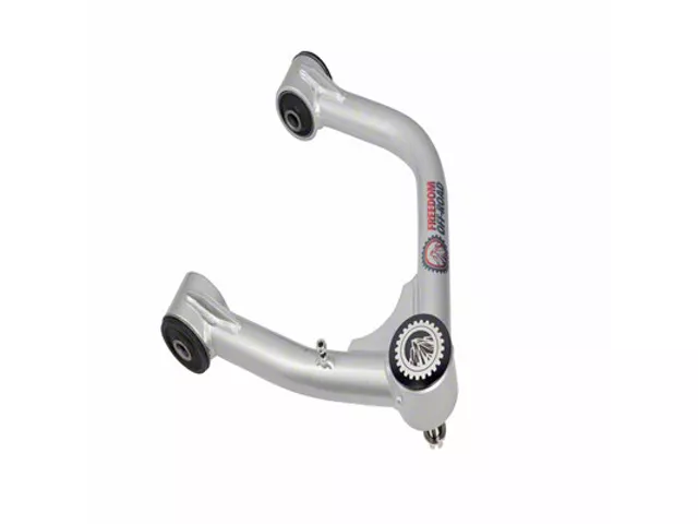Premium Construction. Freedom Offroad engineered these Front Upper Control Arms using heavy-duty materials with high structural rigidity and corrosion resistance. Each arm is furnished with reinforced rubber bushings with higher load-bearing capacity and improved tear strength than the factory bushings. Moreover, the serviceable 1.50-inch stainless steel uni-balls provide greater articulation and increased durability, while eliminating binding. In addition, the billet cover reduces uni-ball exposure to the elements for longer service life.