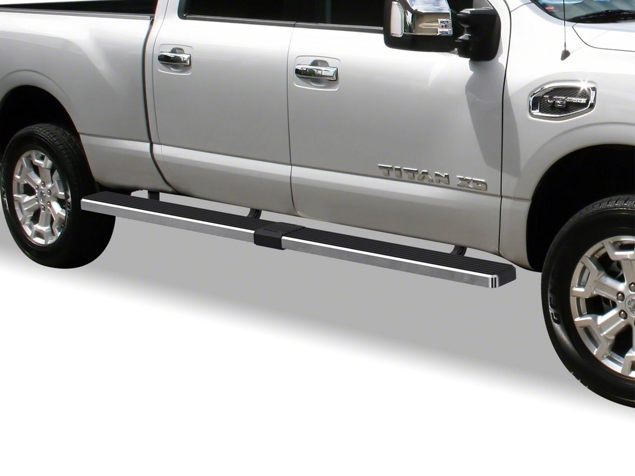 The iStep 5-inch wheel to wheel side step/running board is constructed with durable stainless steel. Its surface is fully covered with a ribbed step pad that enhances traction while getting in and out of the vehicle, providing a secure and sturdy access. The side step's simplistic and sleek design gives your vehicle an upgraded appearance.